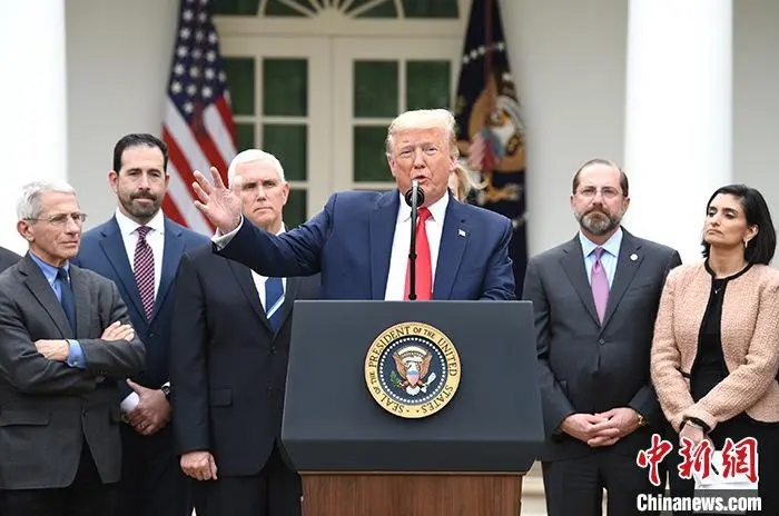 当地时间3月13日,美国总统特朗普在白宫宣布“国家紧急状态”,应对新冠肺炎疫情。中新社记者 陈孟统 摄
