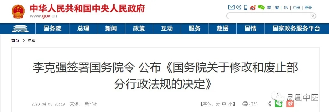 重磅!国务院正式废止《中华人民共和国中医药条例》!更方便民间中医转正