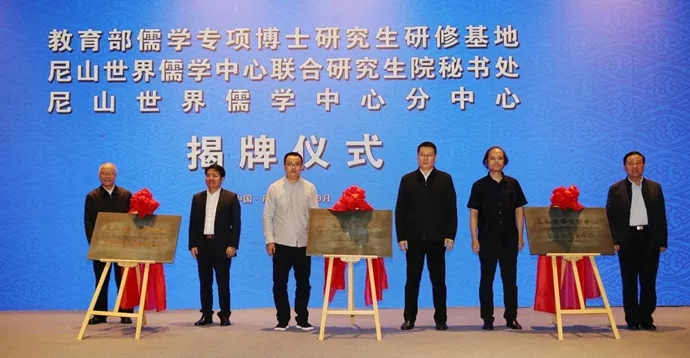 武汉大学研究生院院长陈传夫,尼山世界儒学中心党委委员、副主任刘皓,中山大学副校长刘济科,济宁市政府党组成员李金礼,四川大学国际儒学研究院院长舒大刚,曲阜市委书记刘东波分别为“武汉大学分中心”“中山大学分中心”“四川大学分中心”揭牌