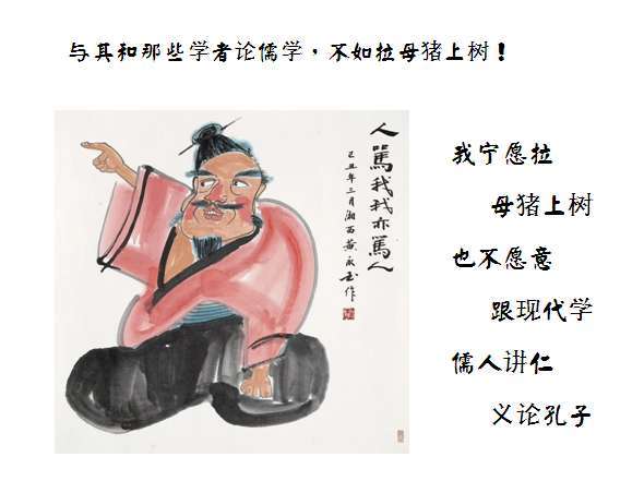 大家都对现代填鸭教育反感反思的时候,作为儒家人士,居然沉迷在百度一样夸张的国学知识和书目里,拿着怪里怪气的书卷气到处乱指挥,瞎吆喝,这不是很搞笑么?读书是为了明理,明理是为了好好做人做事。不然,整天只是熏染纸香墨臭,出口处处之乎者也和道德仁义,做人却毫无诚信,更难忠恕,做事是一塌糊涂,这读书又有何用?
