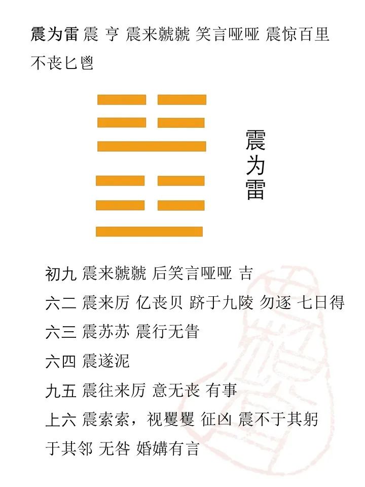 身端,心诚之谓也。诚心,复其不善之动而已矣。不善之动,妄也;妄复,则无妄矣;无妄,则诚矣。不善之动,妄也;妄复,则无妄矣;无妄,则诚矣。1、无妄卦是排列在地雷复卦之后的。所以,要看懂无妄卦,先需看懂地雷复卦,要看懂复卦,先需看懂震卦(见下图)。2、地雷复卦从整体来看,是一个六画大震卦。从儒家的修身来看,是真阳的发动而反反复复点化阴质的修炼现象。复卦之真阳发动,大震群阴而有六种大震动。这大震动是穿越习性和秉性的内景。佛、道修炼人修到此境界时,能当下证悟。儒门的修身其实也需如此破得群阴,方得明天理,方得行而无妄。儒者不是光读书就能明天理的。值得一提的是,平时练功也会出现各种雷鸣、震动等现象,有的仅仅是气脉的冲开,不一定是破群阴的境界,对这些光景,不可随便猜测。当然,这种境界在道家的内景中谈得比较多,儒家基本不谈这些。因为,每个人的根性不同,个人修证的境界也有很大的差别,不是每个人都要经历这种内景。关于修炼境界问题,这里不多说。这里特拈出此等内景来讲,是为了让大家更加深入地理解儒家的"天人合一"。
