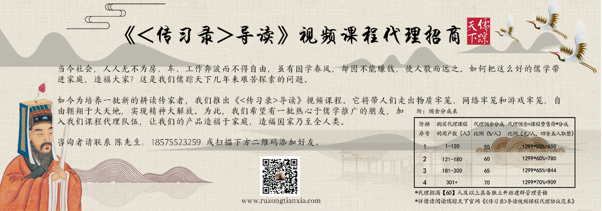◇ 儒学终于出手了。儒踪天下《<传习录>导读》视频课程录制完成后,有人要出钱买断。出价方毫不客气,直接就要一个亿,结果都被吓跑了。