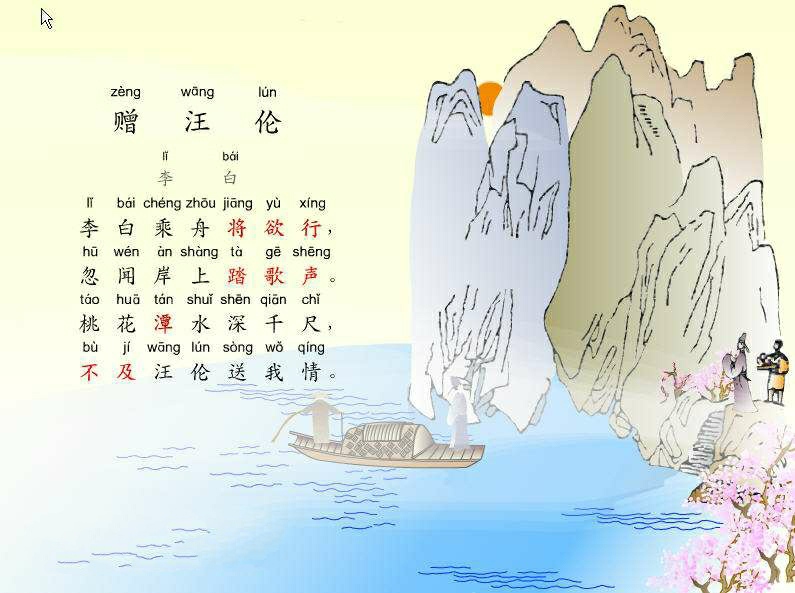 古人送客,一定真诚地送到渡口。为何汪伦与李白不同来?临时有事?但不论什么原因,汪伦还是跟着来了,而且是乘舟将欲行之时,汪伦才踏着歌声而来,估计是提着一壶酒赶来的。兴奋之余李白又脱口而出:潭水千尺,比不上汪伦送我之情深啊。诗歌短短四句,写得平白如水,意境却藏而不露,句句刻骨铭心!