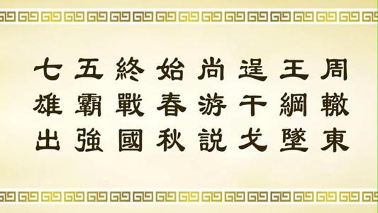 春秋过后进入战国已经不再是争霸,而是争雄。这个时期更是混乱,更加不把周天子放在眼里。所以在儒家的义理里面,从古代的“圣、贤、霸、雄、毒夫、国贼”有这么些词,大家要熟悉下的。国贼是窃天下的人,比如王莽篡天下;孟子将商纣王称作毒夫。在七雄争霸中最有名的事件就是合纵和连横,《千字文》中也提到过,苏秦的合纵,张仪的连横,最后秦兼并六国,统一了天下。