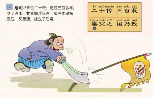 在唐朝末年(西元907年)朱温灭唐后,五十余年里面相继有梁、唐、晋及汉周这些历史上人称五代,还有十国。这里面《三字经》就没有提到十国。