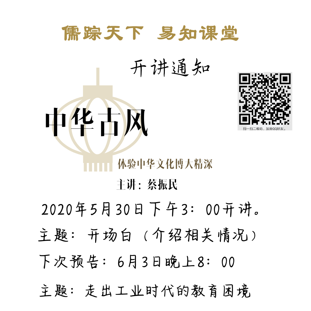 易知课堂001 | 儒踪天下易知课堂今天正式开播(第1场),QQ直播,场场公益,欢迎光临!