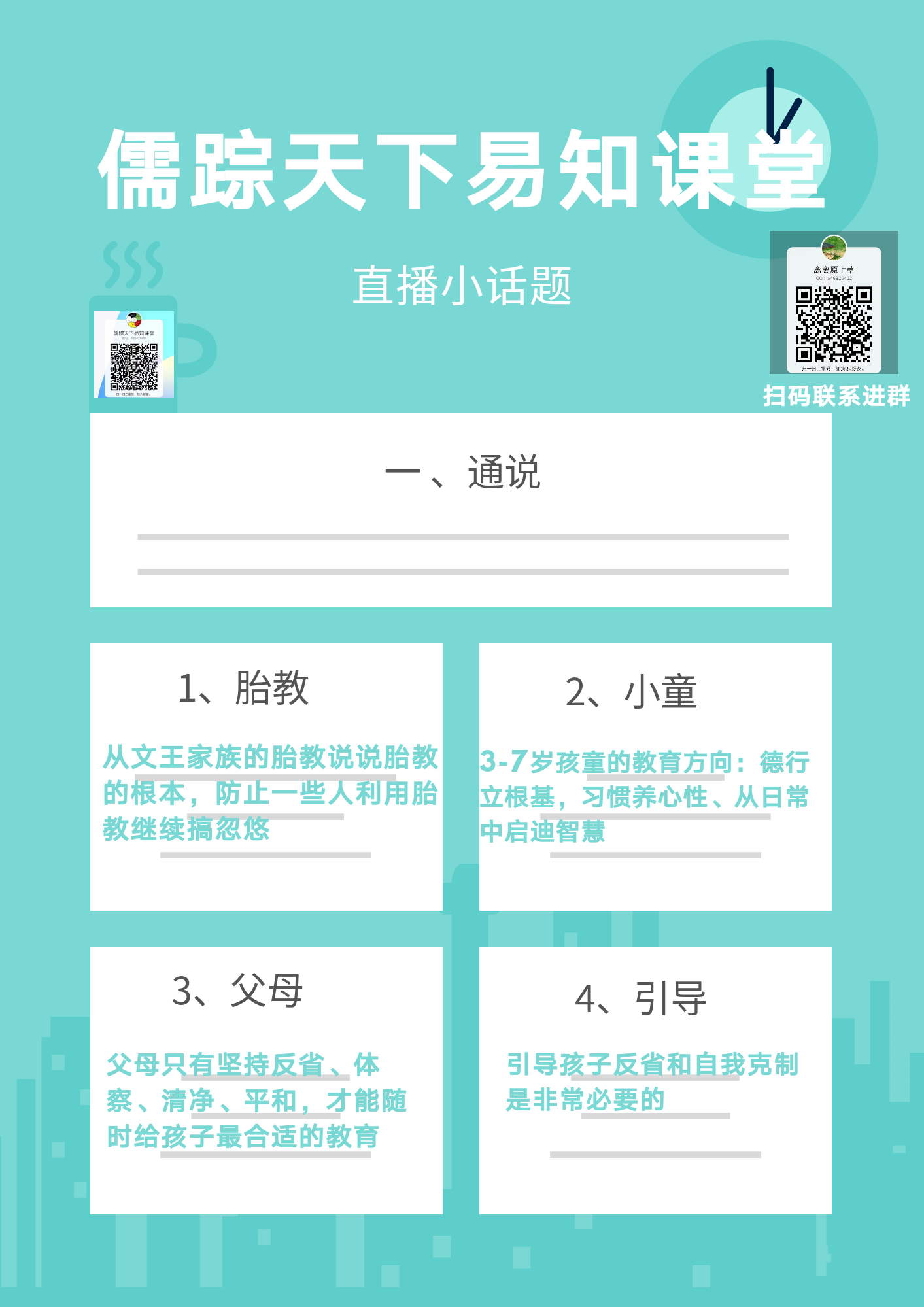 好消息!儒踪天下易知课堂,孩子教育和家庭家族文化专场,今天正式QQ直播,开课啦!欢迎扫码进课堂!