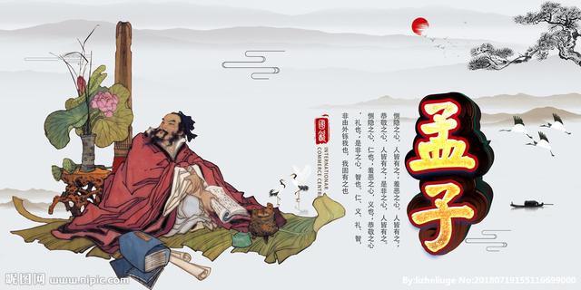 和孔子一样,孟子也曾带领学生周游列国,并一度担任过齐宣王的客卿。由于他的政治主张也与孔子的一样不被重用,所以便回到家乡聚徒讲学,与学生万章等人著书立说,“序《诗》《书》,述仲尼之意,作《孟子》七篇。”(《史记.孟子荀卿列传》)