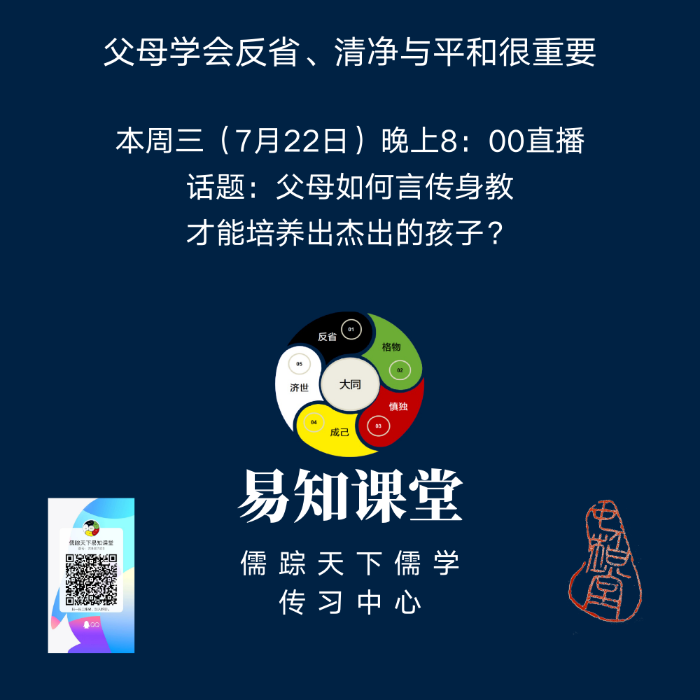 易知课堂010 | QQ公益直播(第11场),本周三(今晚)7月22日 晚上8:00,话题:父母如何言传身教才能培养出杰出的孩子?