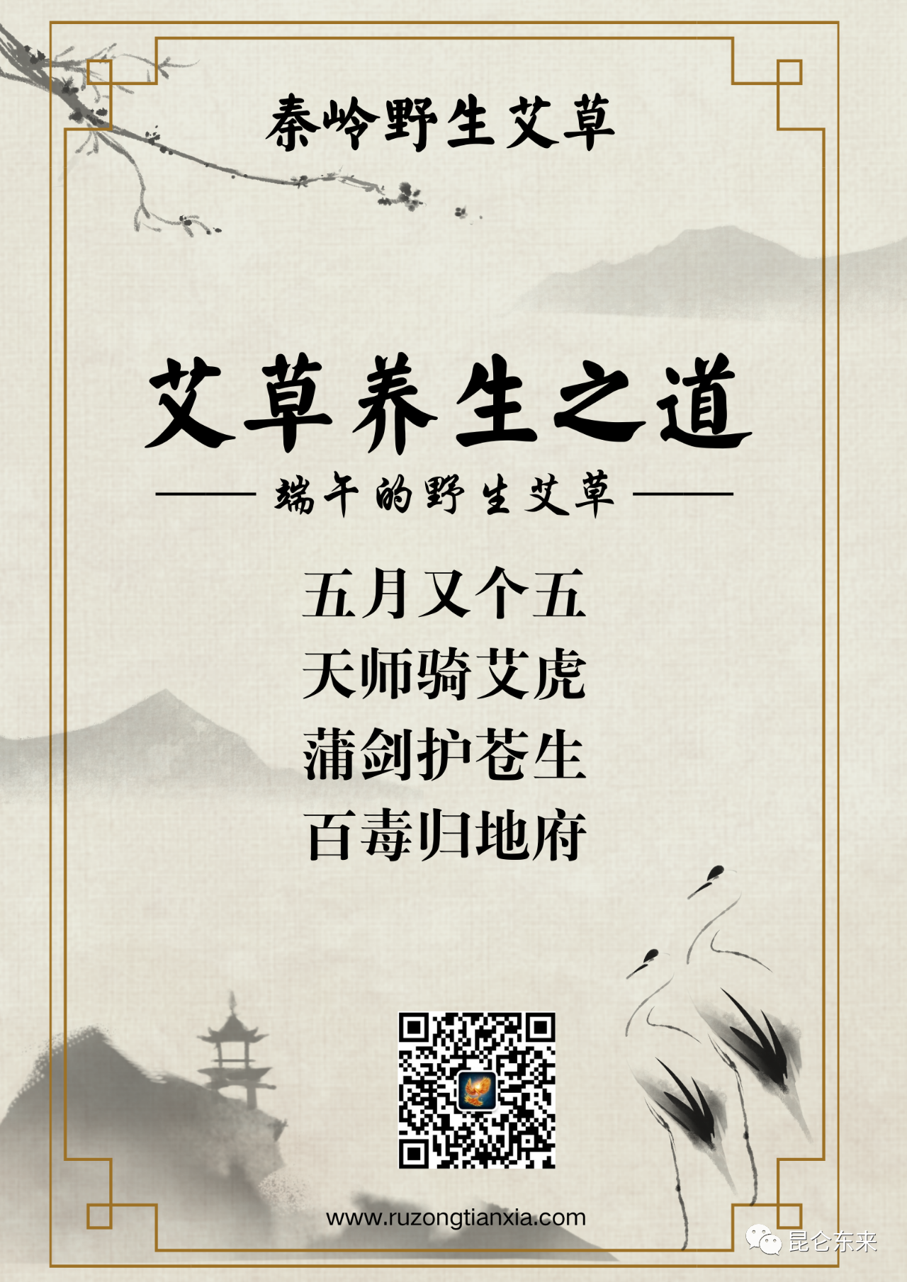 艾草也称神草,农历四月小满过后,乾为消息卦,乾阳之气正盛之时,艾草也就随着乾阳而渐渐长为纯阳之物,在端午前后最为成熟。故民间在端午家家户户都把艾草挂在门前,以纯阳之气驱赶百毒,守护一家平安。民间有谚语这样描述: