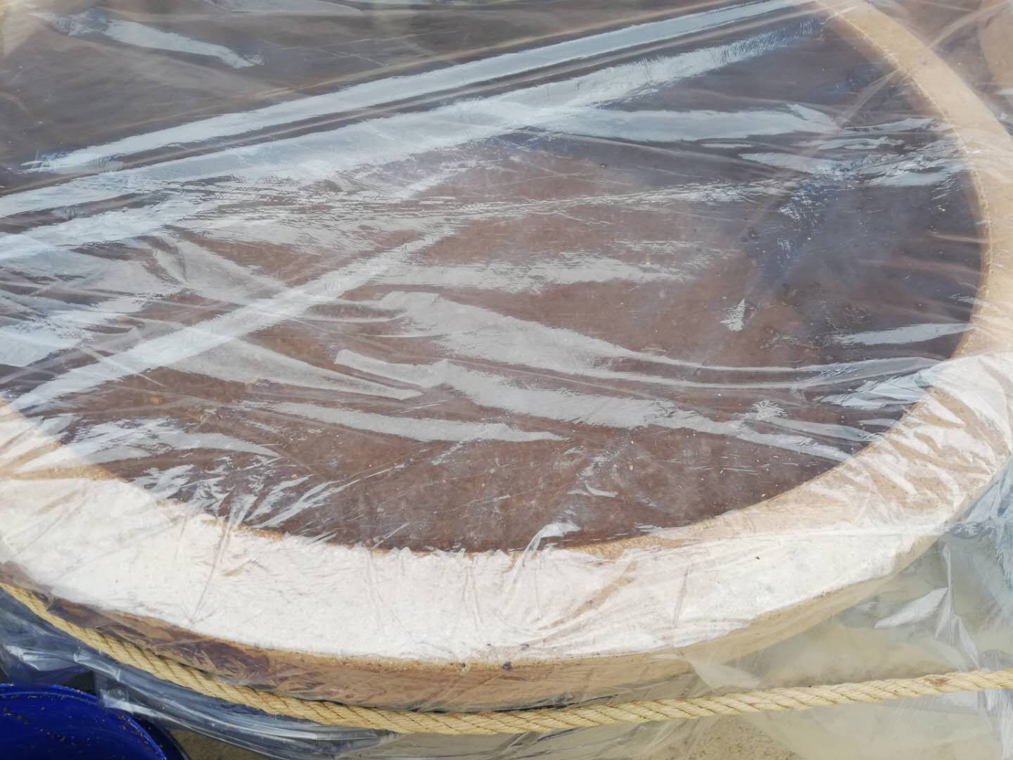 装缸,然后盖上塑料薄膜,让他焐制一下,就是发酵一下。