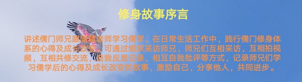 小颖师兄安排我的功课是“分享接触传统文化以来的心得体会”。我学传统文化的起步很晚,时间两个月多月,境界还很低,分享中会有很多错误和失误,我很愿意改正和提升,恳请师兄们不吝批评指正。我唯一的希望就是请大家不要生烦恼,心平气和地帮助我。感恩大家。