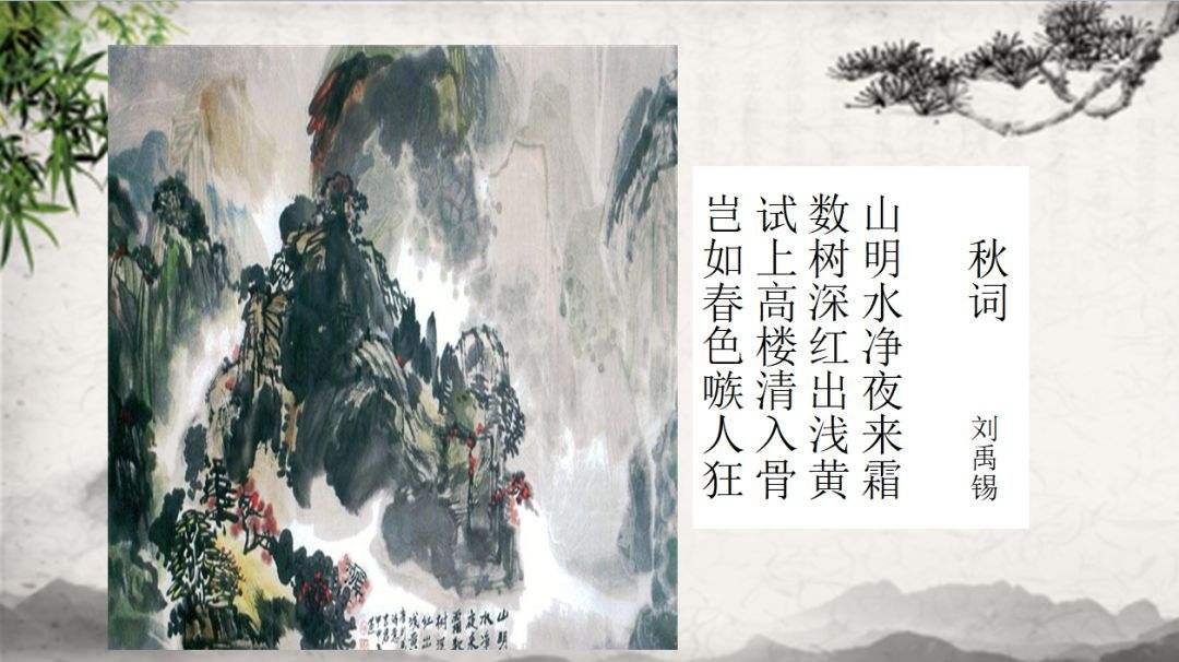 山明水净,这是秋的宁静,甚有“空山新雨后,天气晚来秋”的那种空灵。深秋下霜,难免有点凄凉。可喜的是,有几棵树上的红叶从一片枯黄中透出,光彩夺目,让人精神焕发。人生何曾不是如此?大多数人,按捺不住秋的寂寞,常常半途而废。而坚毅之君子,则反而在秋之寂寞中飘红。当然,诗人并非要在官场上刻意进取,而是要在人格上开出自己的傲霜枝!于是紧接着写道:“试上高楼清入骨,岂如春色嗾人狂”。秋高季节,登上高楼,寒清之气直透入骨。读到这里,我不禁想起——“梅花香自苦寒来”。君子正是因为守得住寂寞,故处穷途而志益坚,正是因为经得起苦寒,故虽严酷而香益清奇。秋与春相比,春天虽美,人人向往,但舒适温馨之春天却容易催人心之发狂啊。生活不正是如此么?历史上,哪个成就伟大事业的人物,不是在艰难困苦和寂寞中脱颖而出的?那些把江山白白丢了的,哪个不是在春色里沉醉的?