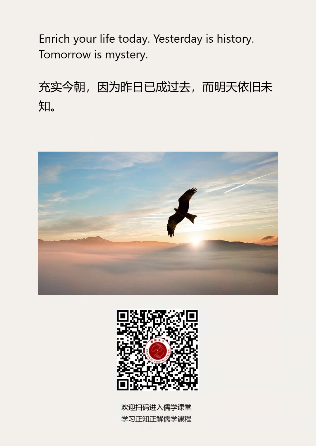 Confucianism English 79 | 充实今朝,因为昨日已成过去,而明天依旧未知。