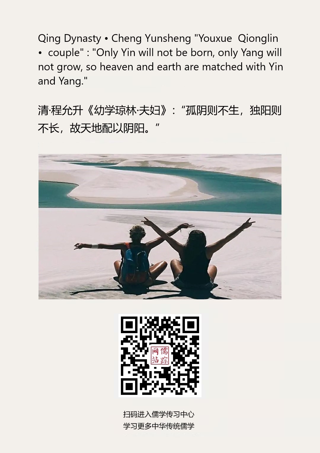 Confucianism English 80 | 清·程允升《幼学琼林·夫妇》:“孤阴则不生,独阳则不长,故天地配以阴阳。”