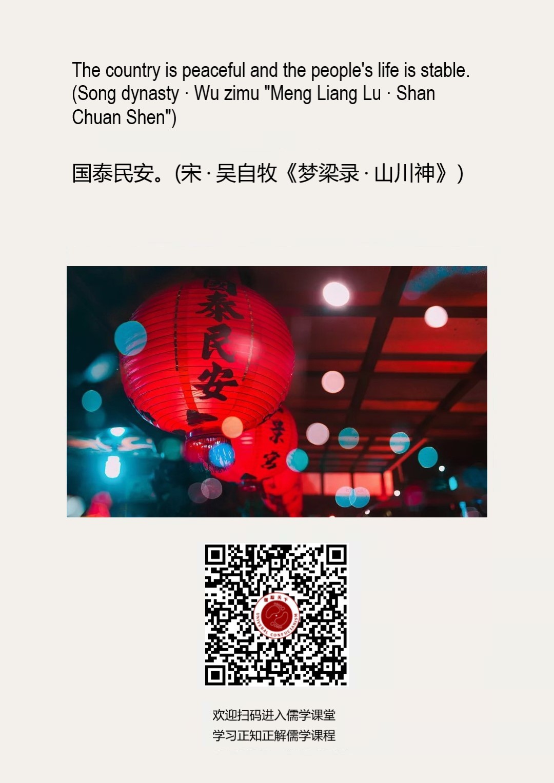 Confucianism English 99 | 国泰民安。(宋·吴自牧《梦梁录·山川神》)