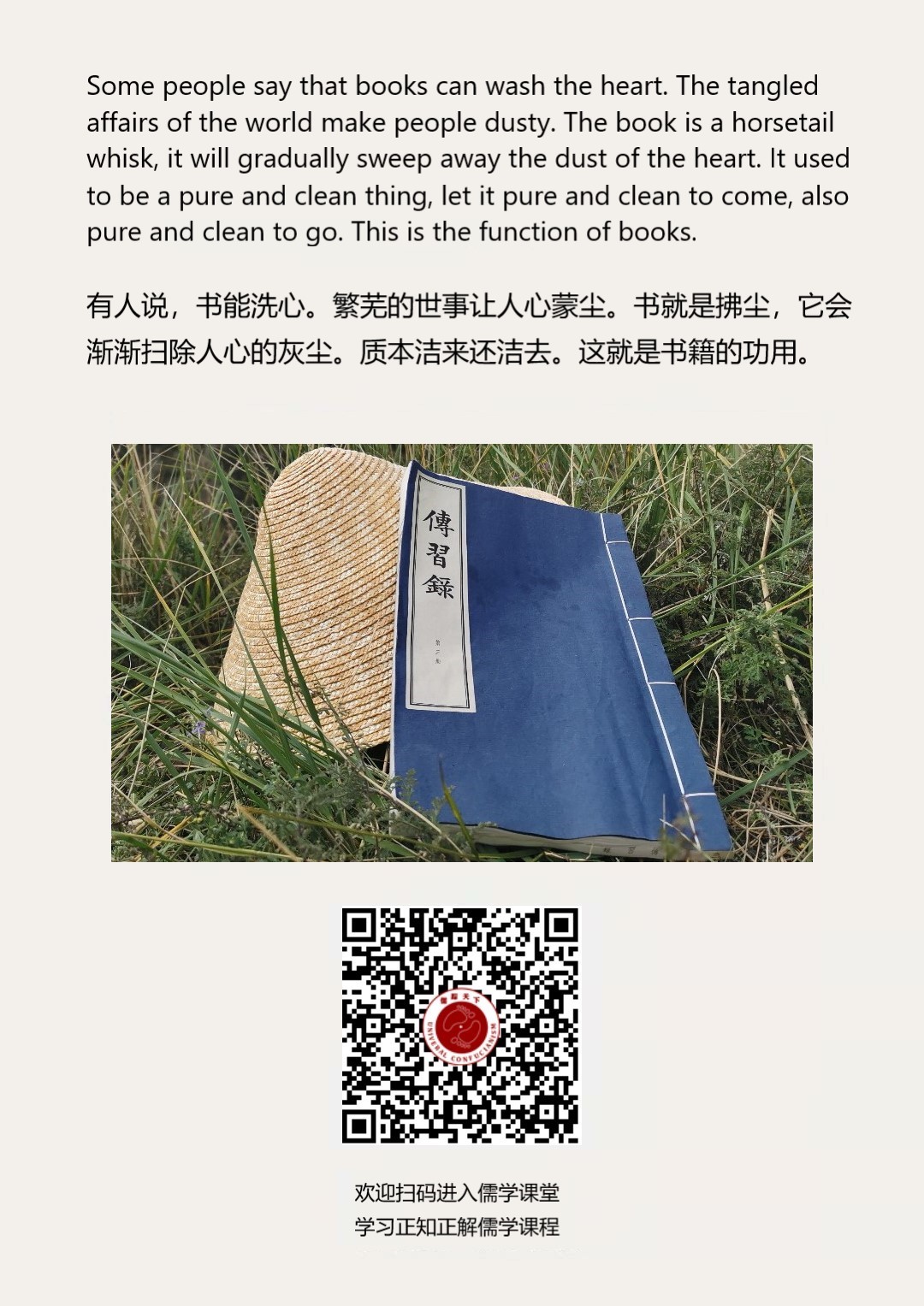 Confucianism English 135 | 书能洗心,书是拂尘,它会渐渐扫除人心的灰尘,质本洁来还洁去。