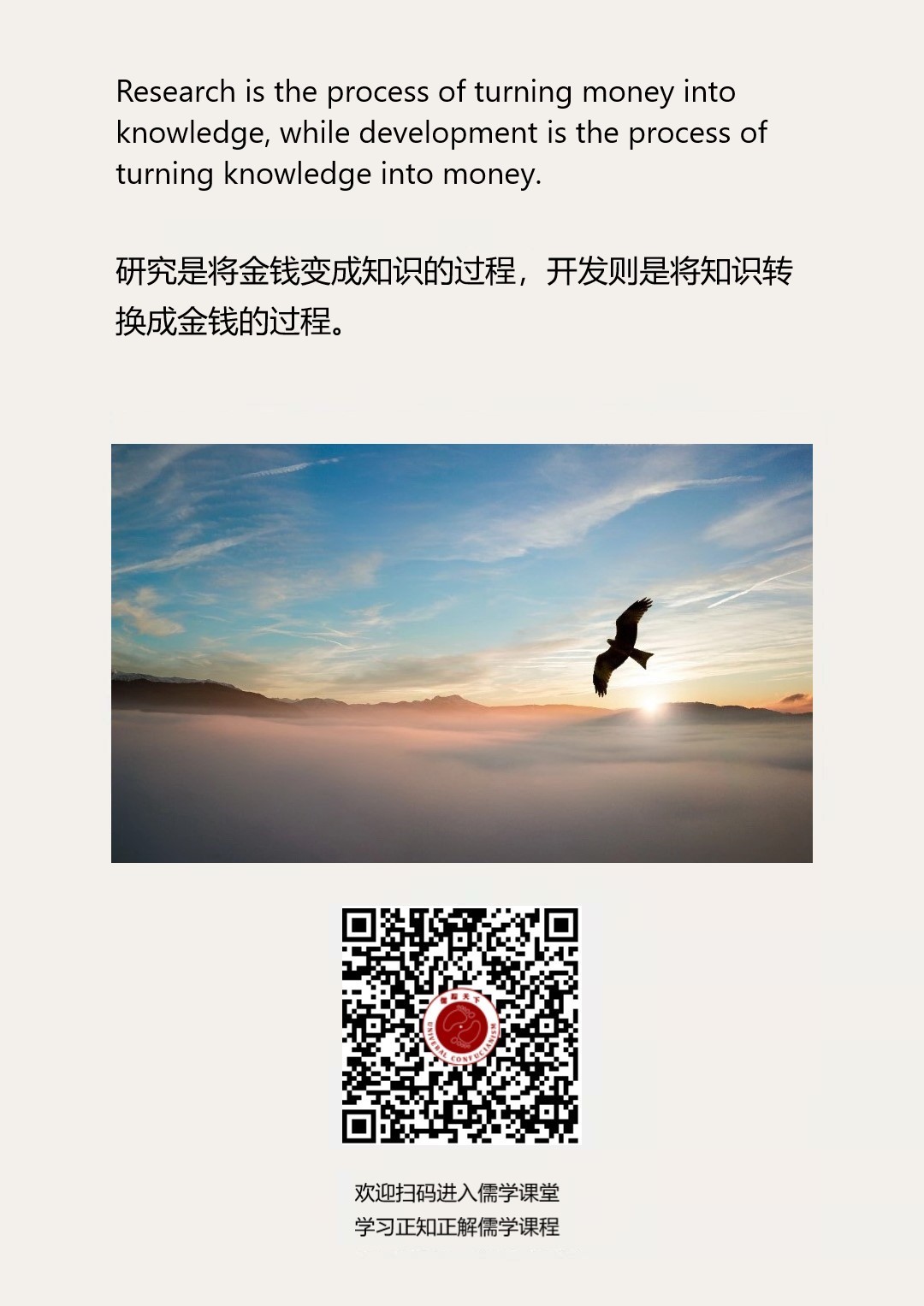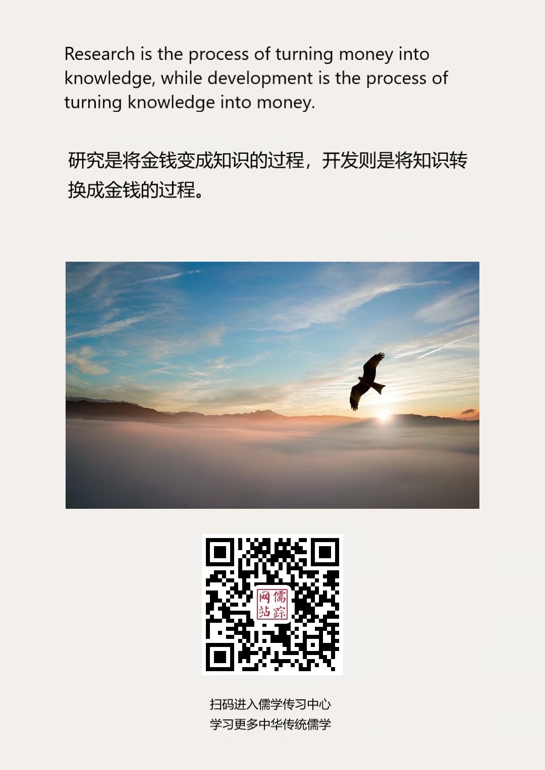 Confucianism English 167 | 研究是将金钱变成知识的过程,开发则是将知识转换成金钱的过程。
