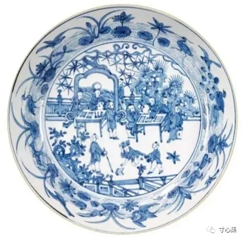 (童子闹学图,青花瓷盘,作于明代,15世纪)