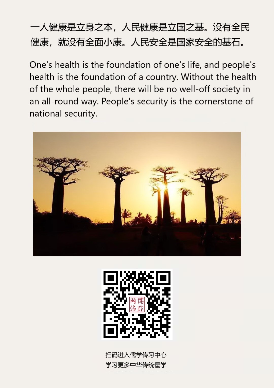 Confucianism English 193 | 一人健康是立身之本,人民健康是立国之基。没有全民健康,就没有全面小康。人民安全是国家安全的基石。