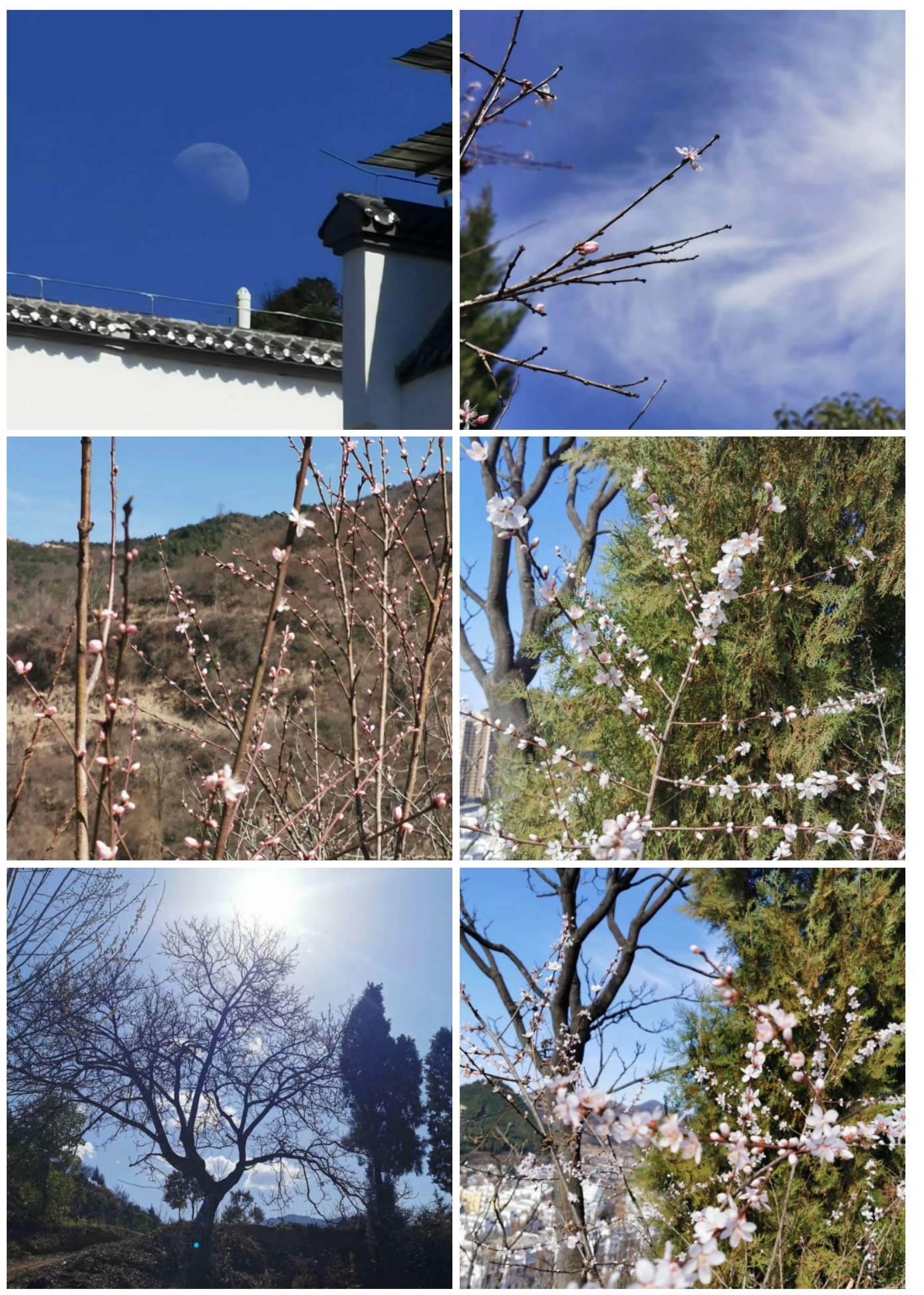 山里的春天,真的是春天。正午的月亮,蓝天深处的白云,遍野的桃花,都是那么自然自在和安详。