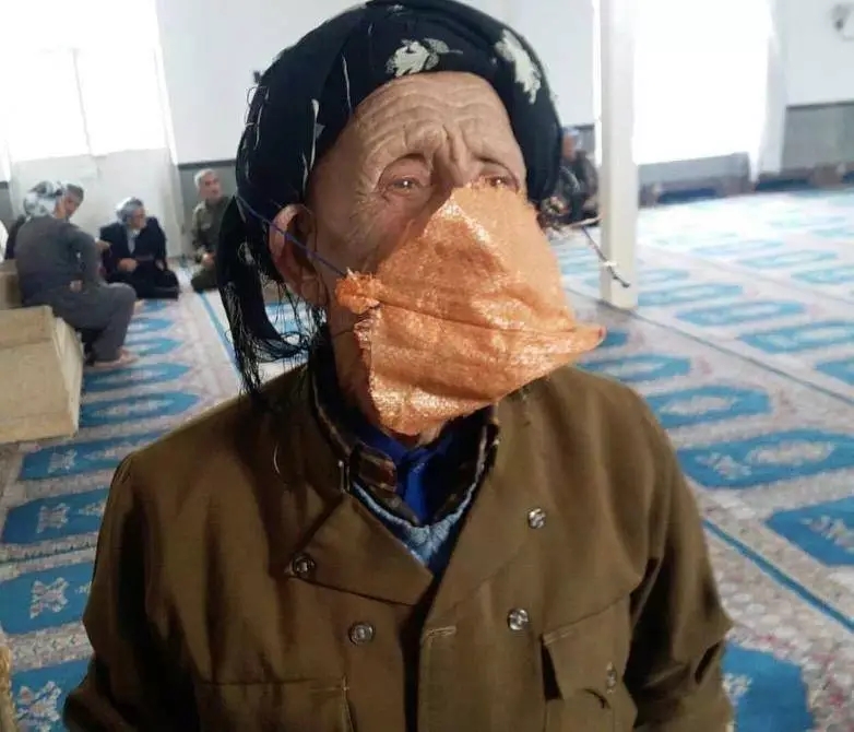 在伊朗,口罩高价难求,很多人在无奈之下戴起了自制口罩;