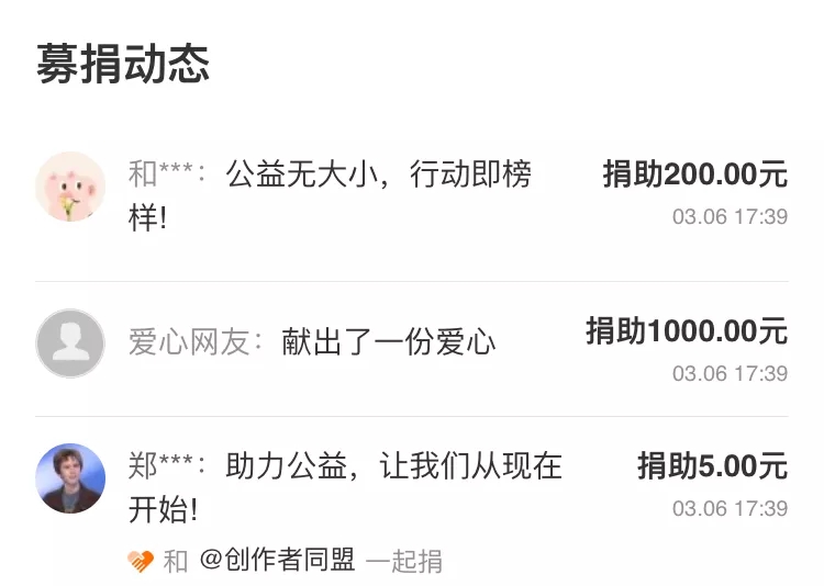 看看下面的募捐动态,小到5元,大到1000元,全是中国人想要回馈给这个国家的爱心。