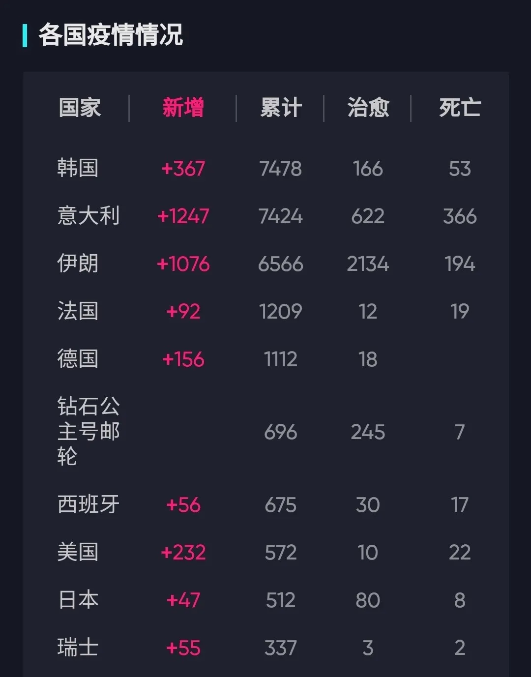 韩国的增长速度令人咂舌,一天增长曾高达813人。
