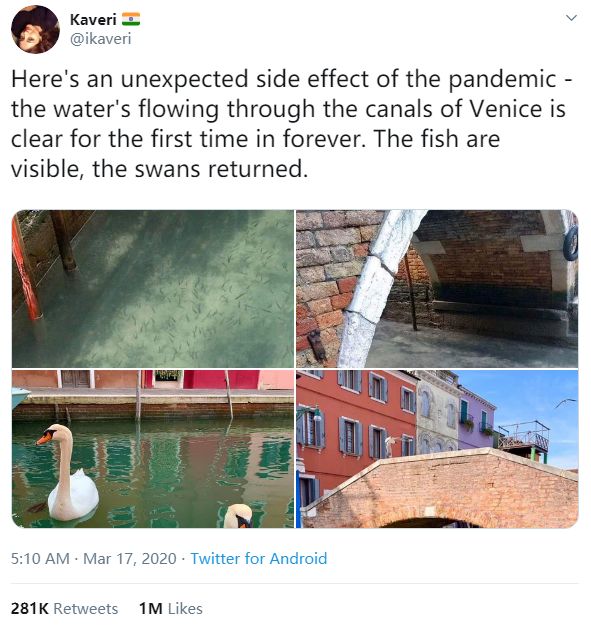 人类隔离才几天,河水清了,空气好了,连动物都回来了…