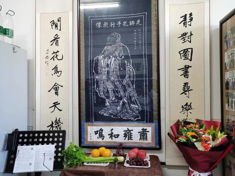 门内秋季释菜礼,共拜先师孔至圣。