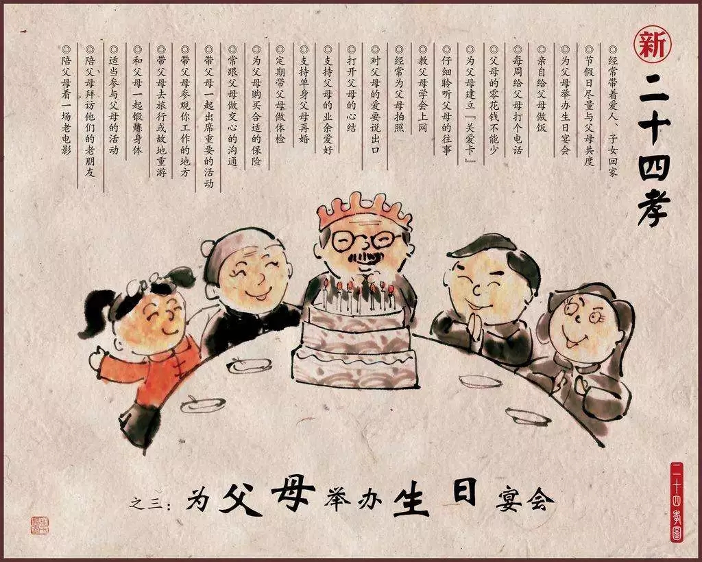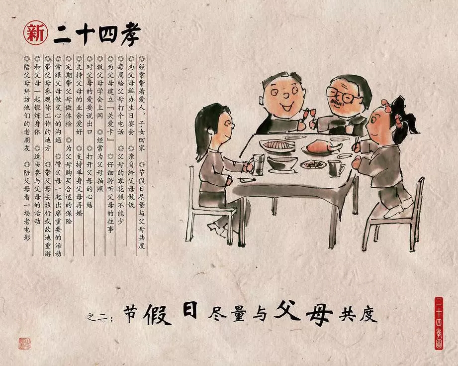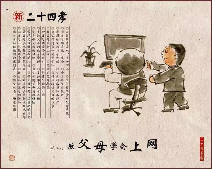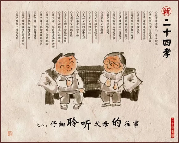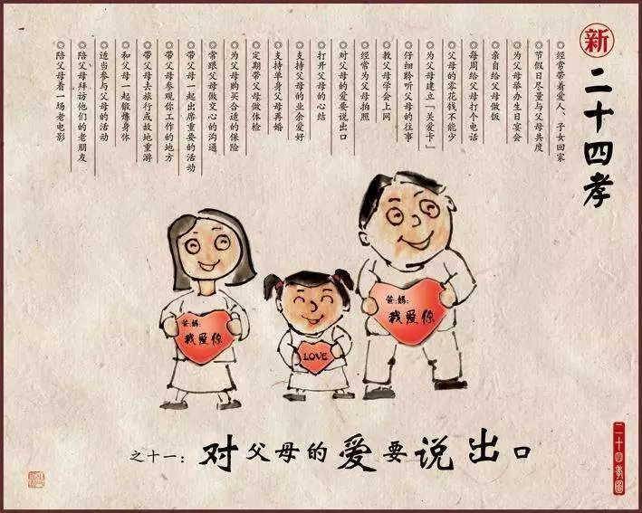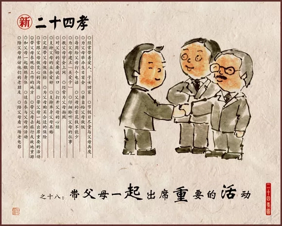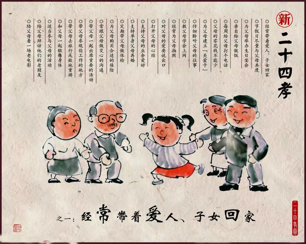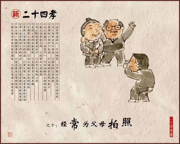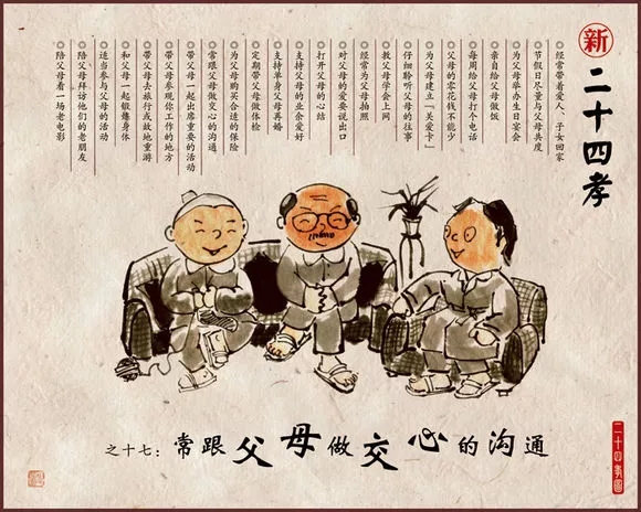 时代日新月异,中国的传统孝道也在发生不断变化,今天,就让我们一起来看看什么才是当下的二十四孝——