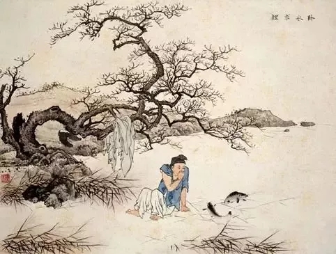 王祥,琅琊人,生母早丧,继母朱氏多次在他父亲面前说他的坏话,使他失去父爱。父母患病,他衣不解带侍候,继母想吃活鲤鱼,适值天寒地冻,他解开衣服卧在冰上,冰忽然自行融化,跃出两条鲤鱼。继母食后,果然病愈。王祥隐居二十余年,后从温县县令做到大司农、司空、太尉。