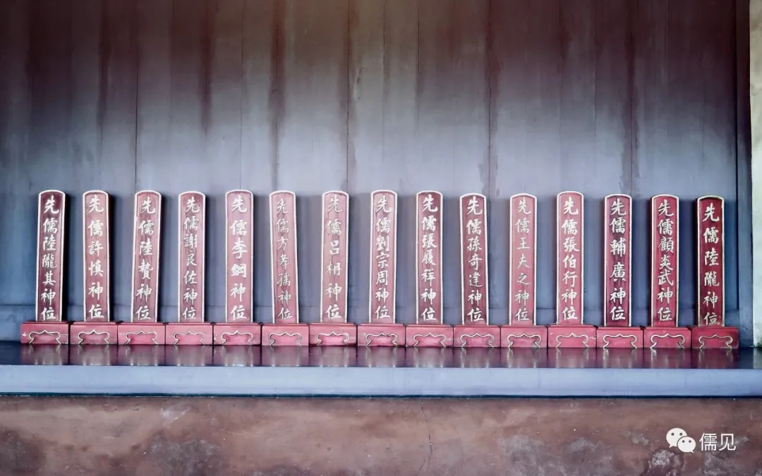 图为台南孔庙部分从祀先儒的神位。或评论曰「牛骥同一皂,鸡栖凤凰食」。朱颐钊摄