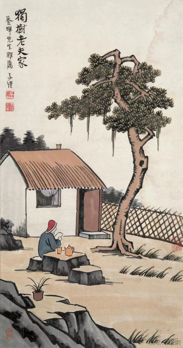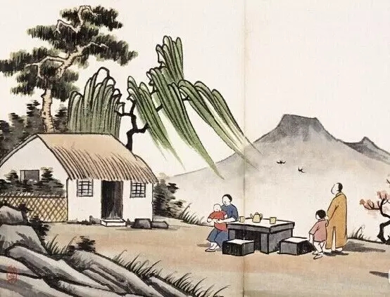 丰子恺的漫画,形式介于国画与漫画之间,风格简洁朴素,隐含着出世的超然之意和入世的眷眷之心,是那种让人感动的平凡,或是令人落泪的辛酸,表现出一种“诗意”与中国“文人情怀”。他自己也说:“漫画二字,望文生义,漫,随意也。风随意写出的画,都不妨称为漫画,因为我作漫画感觉同写随笔一样。不过或用线条,或用文字,表现工具不同而已。” 自古茶与画渊源深远,这位漫画大师的书画中也在不意间流露着茶的闲适与趣味。