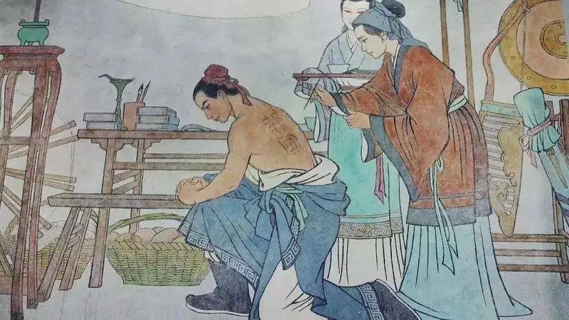 当时,北方的金兵常常攻打中原。传说姚氏为了鼓励儿子报效国家,在他的背上刺了"精忠报国"四个大字。