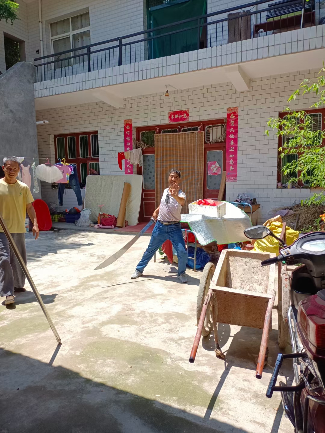 汗透脱衣拧,口渴嚼草茎。