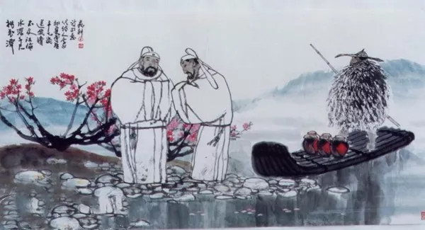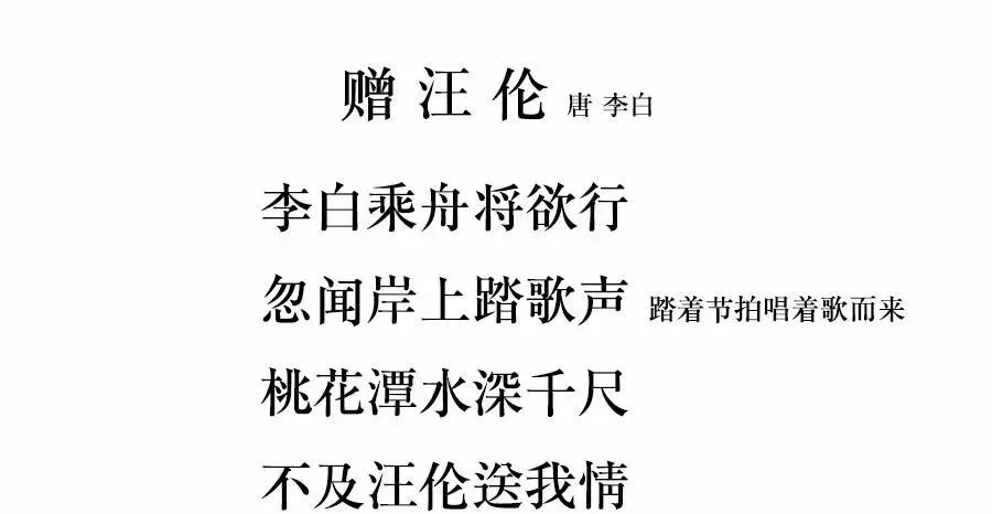 古人送客,一定真诚地送到渡口。为何汪伦与李白不同来?临时有事?但不论什么原因,汪伦还是跟着来了,而且是乘舟将欲行之时,汪伦才踏着歌声而来,估计是提着一壶酒赶来的。兴奋之余李白又脱口而出:潭水千尺,比不上汪伦送我之情深啊。诗歌短短四句,写得平白如水,意境却藏而不露,句句刻骨铭心!