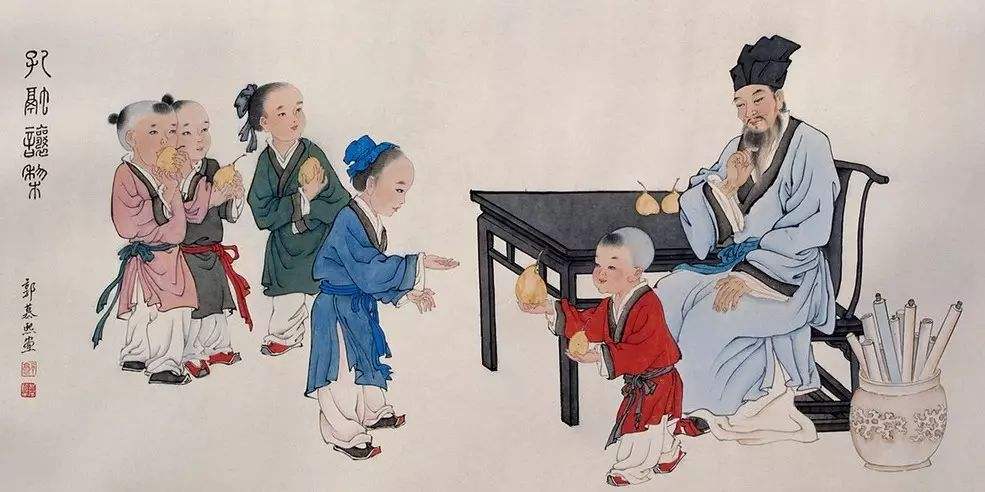 汉代人孔融四岁时,就知道把大的梨让给哥哥吃,这种尊敬和友爱兄长的道理,是每个人从小就应该知道的。