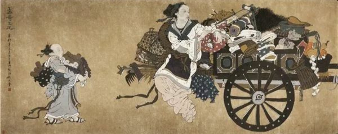 孟子幼年因住在墓地附近,学了许多丧家哭泣的言语动作。孟母就把家迁到了闹市,他又学了商人做买卖的吆喝、举动;再迁到学宫旁,他才学到了礼仪和待人接物的细节,孟母终于定居下来。(*孟子是拜了孔子的孙子子思为老师,传承了儒家的道统,并成为“亚圣”。)