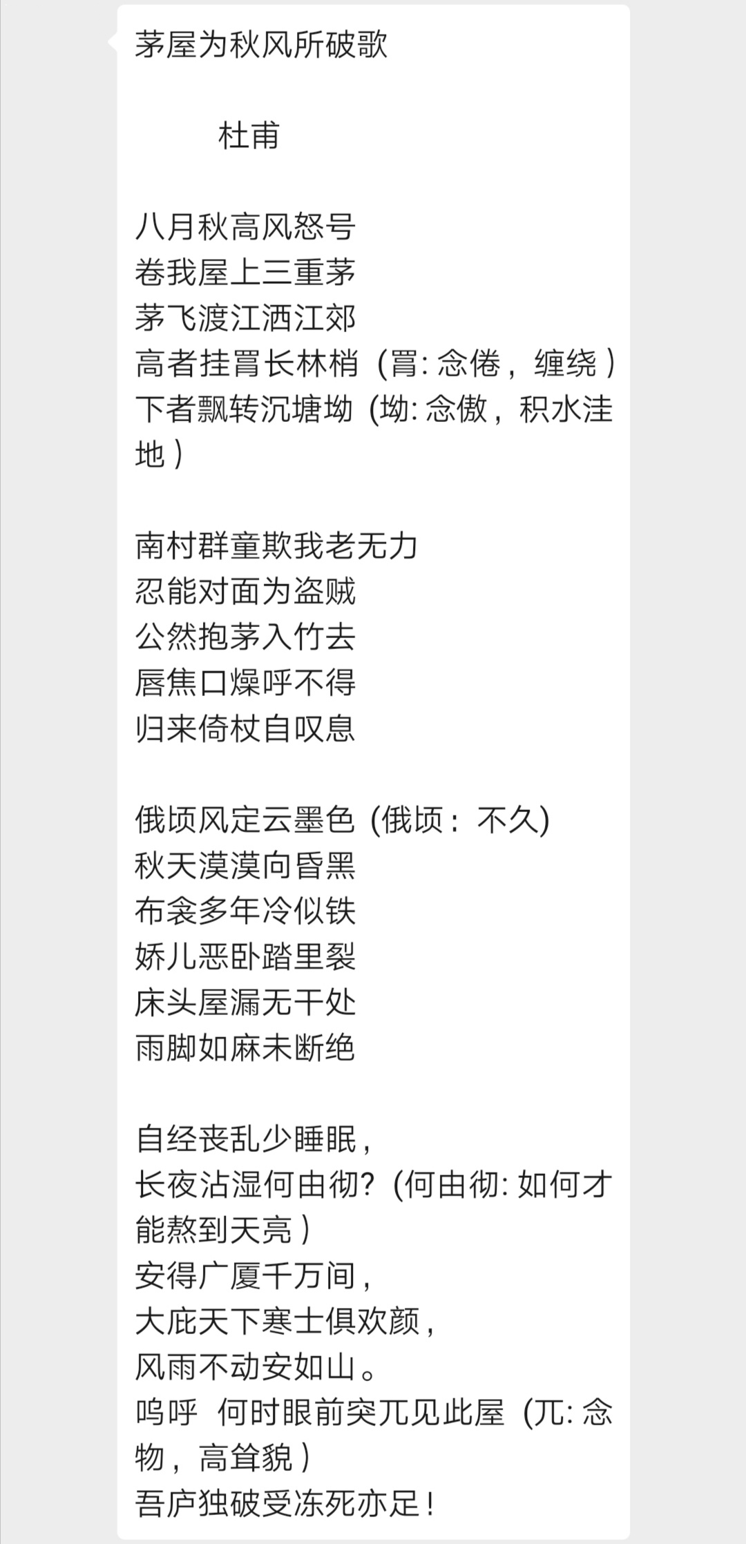 听蔡老师咏唱《茅屋为秋风所破歌》,请点击链接: