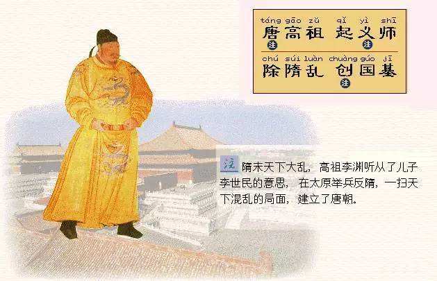 唐高祖李渊,是唐太宗李世民的父亲。他是世袭功臣之家,起义把隋朝酅公废了以后建立唐朝,这时候才是唐朝的开始。李渊有三个儿子李建成、李世民、李元吉,李渊立长子李建成为太子。后玄武门之变,李世民带兵杀了李建成与李元吉,李渊只能立李世民为太子。李世民即位后,李渊即成为唐高祖,李世民为唐太宗。