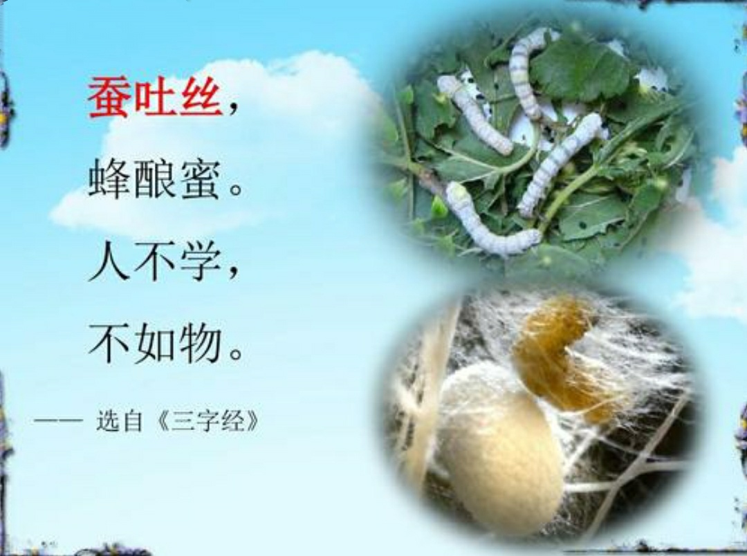 蚕吐丝,蜂酿蜜。人不学,不如物。