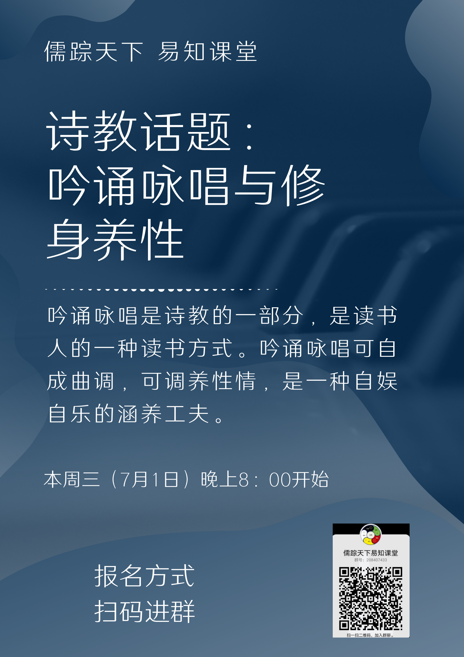 易知课堂007 | QQ公益直播(第8场),本周三7月1日晚上8:00,诗教话题:吟诵咏唱与修身养性