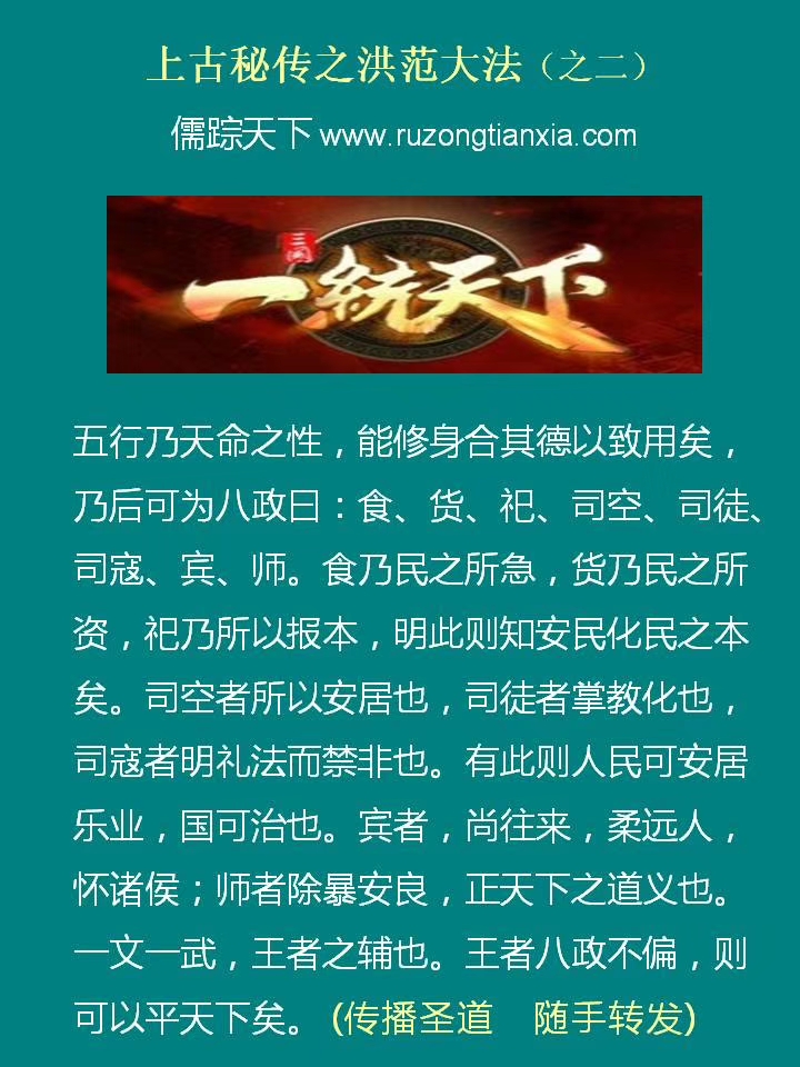下图是秘传洪范大法之庶征篇。文字极其简单,不知天命者,很难读得懂。人心本与天地相通,人心安则四时风调雨顺,如成康之治,四十年监狱无一人。人心乱则天降各种不测之灾殃祸乱,天人合一之应验非常明显。真儒者,或上观天文,或下察地理,或中观人事,都能明显感受到这样天人合一的征兆。所以,为政者一定要正大光明,一定要以德治国,而且要实行圣贤的教化。唯有如此,才能实现世界的和平。