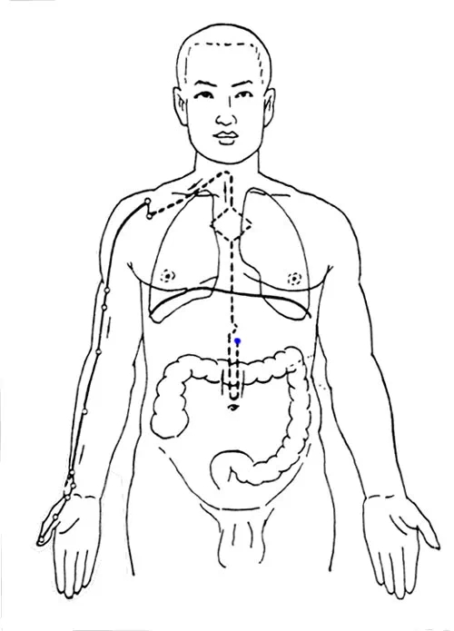 实证:呼吸不畅、咽喉异常、胸闷、气喘、扁桃炎、咳嗽、肩背酸痛易患痔疮等。