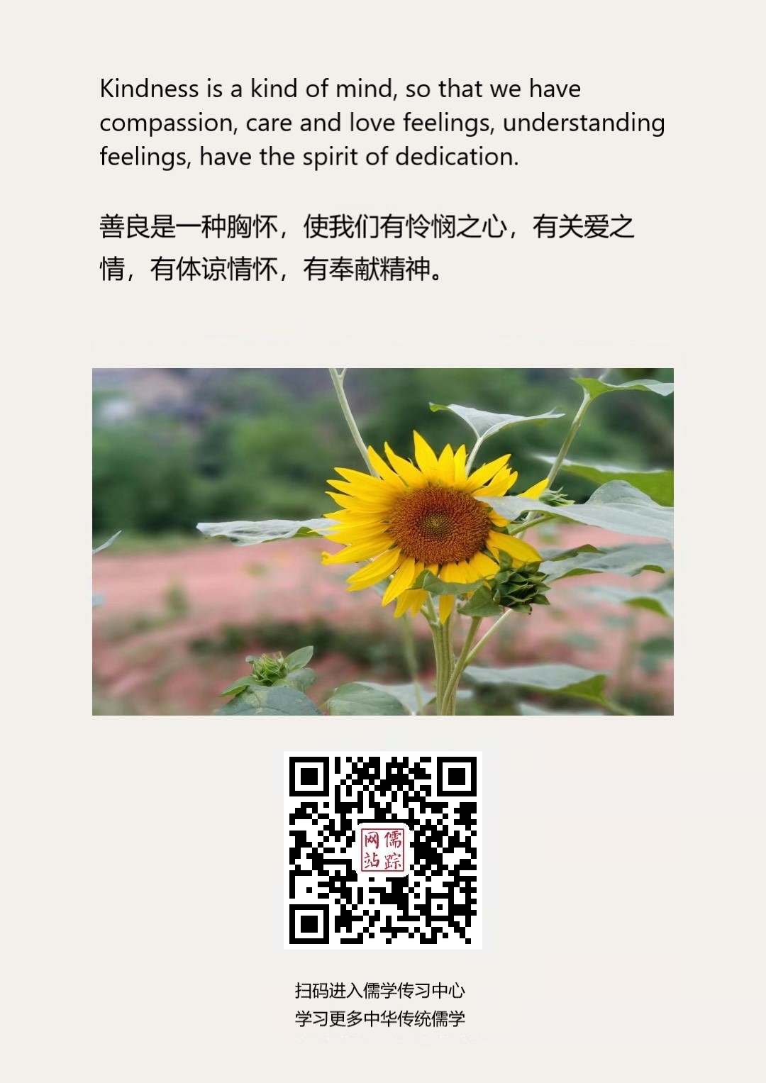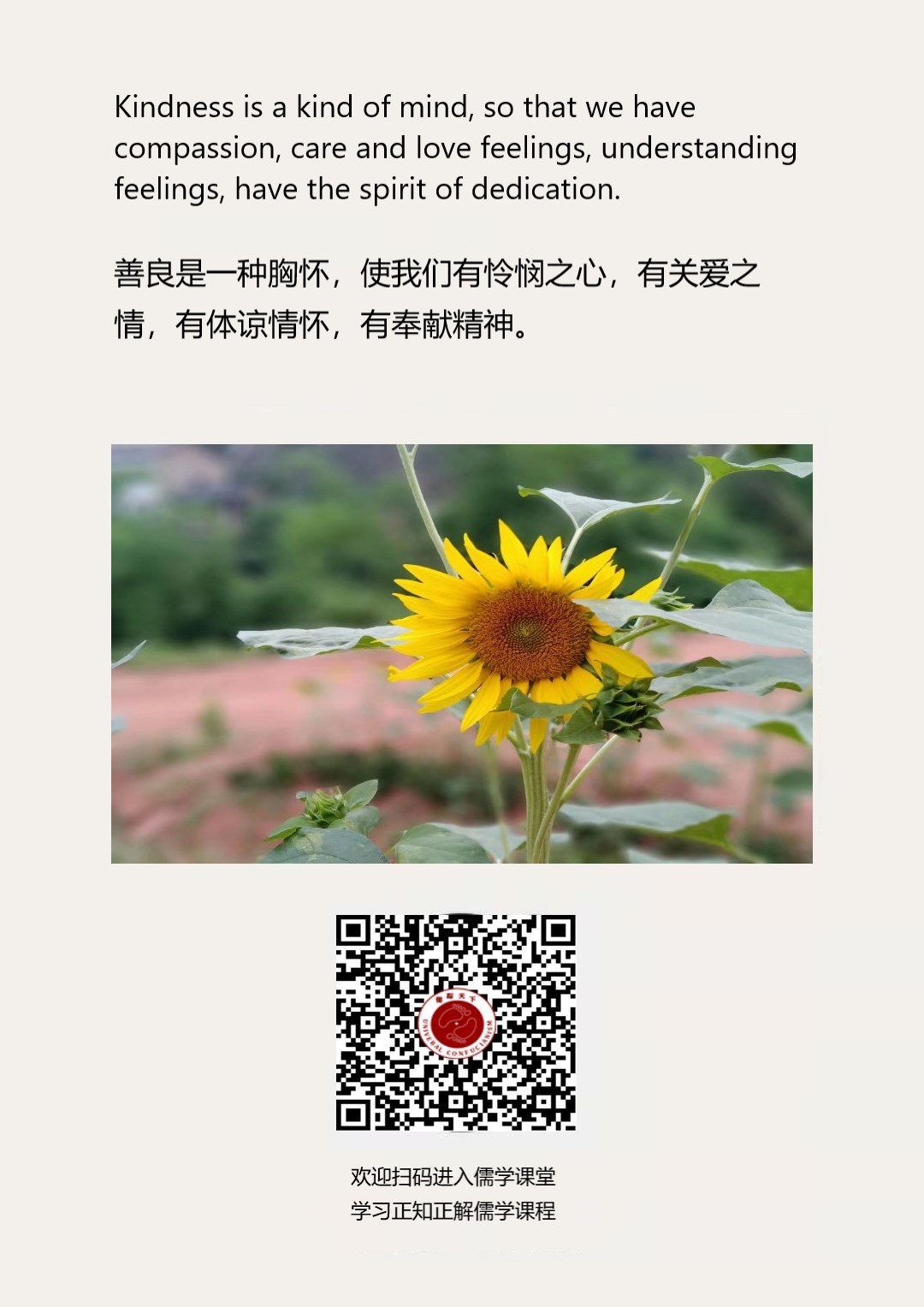 Confucianism English 75 | 善良是一种胸怀,使我们有怜悯之心,有关爱之情,有体谅情怀,有奉献精神。