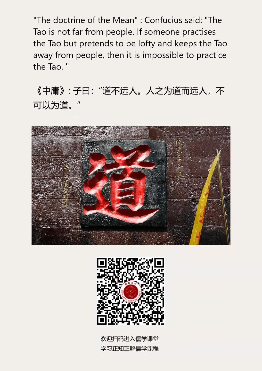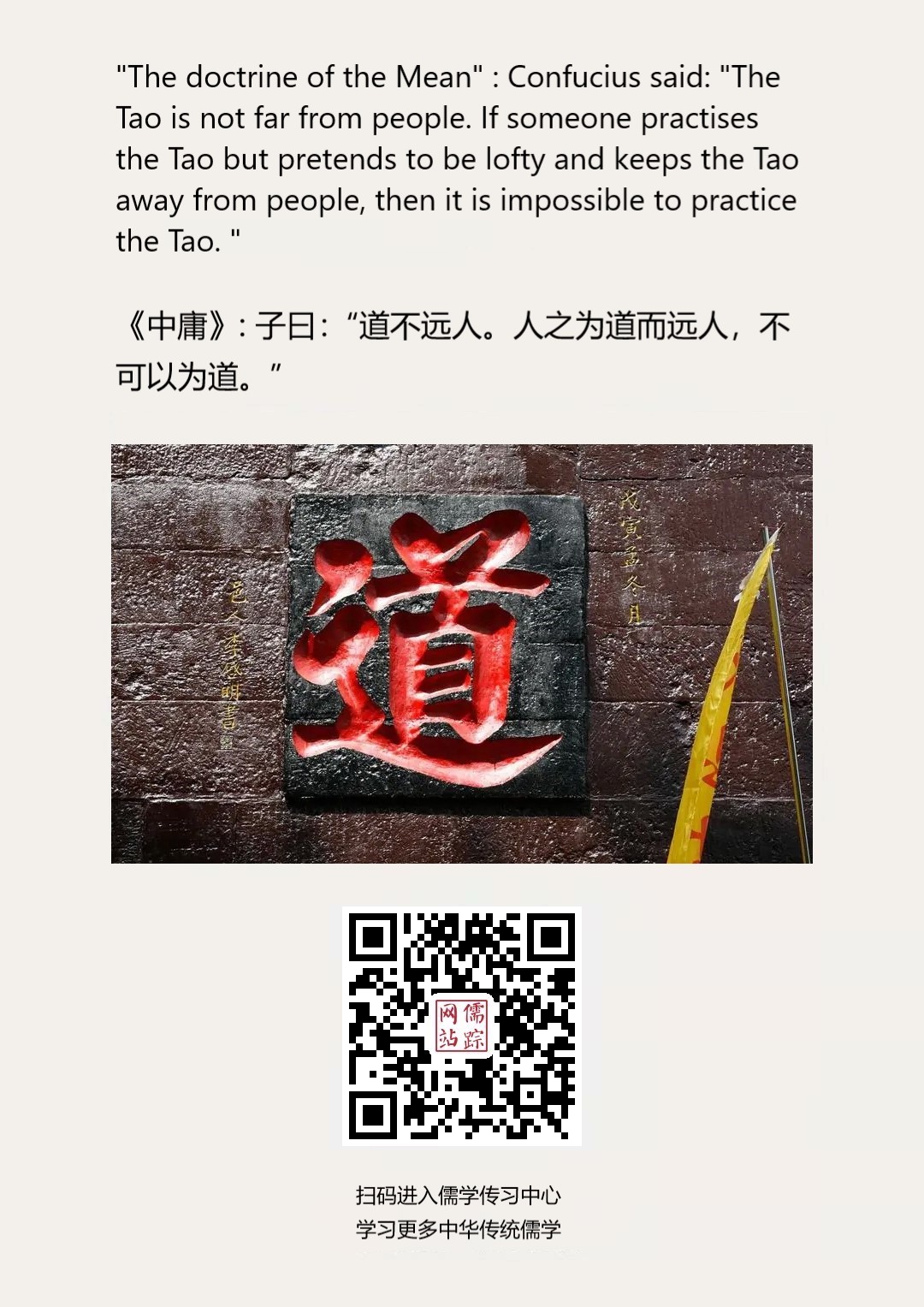 Confucianism English 89 | 《中庸》: 子曰:“道不远人。人之为道而远人,不可以为道。”