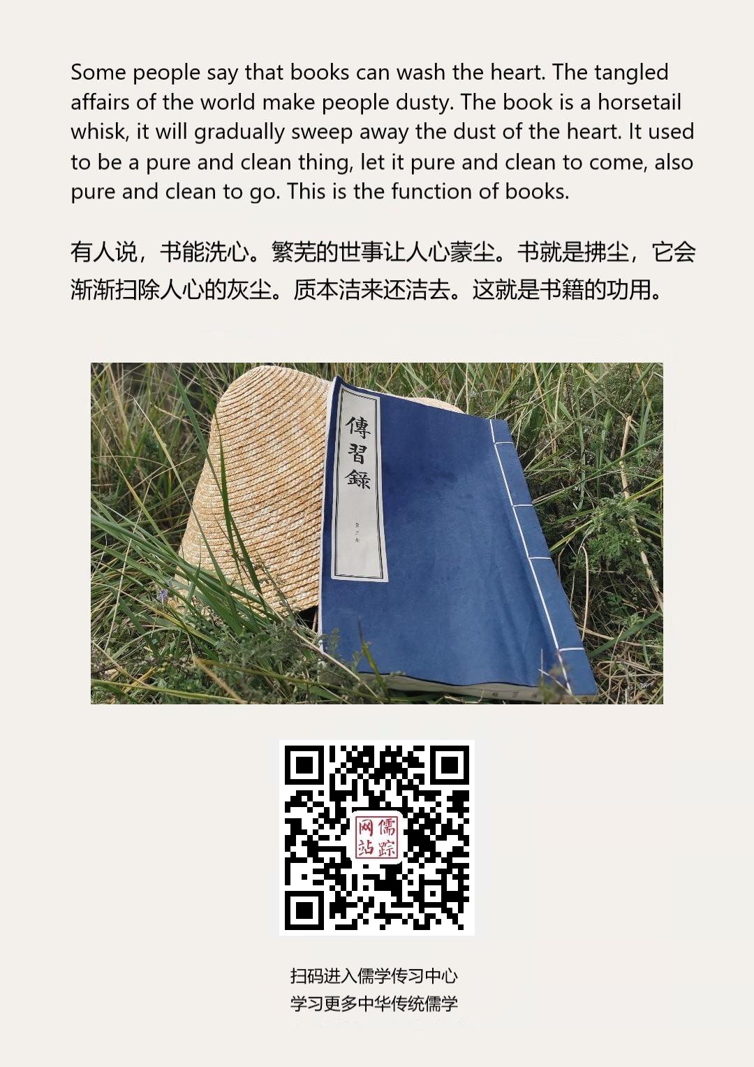 Confucianism English 135 | 书能洗心,书是拂尘,它会渐渐扫除人心的灰尘,质本洁来还洁去。