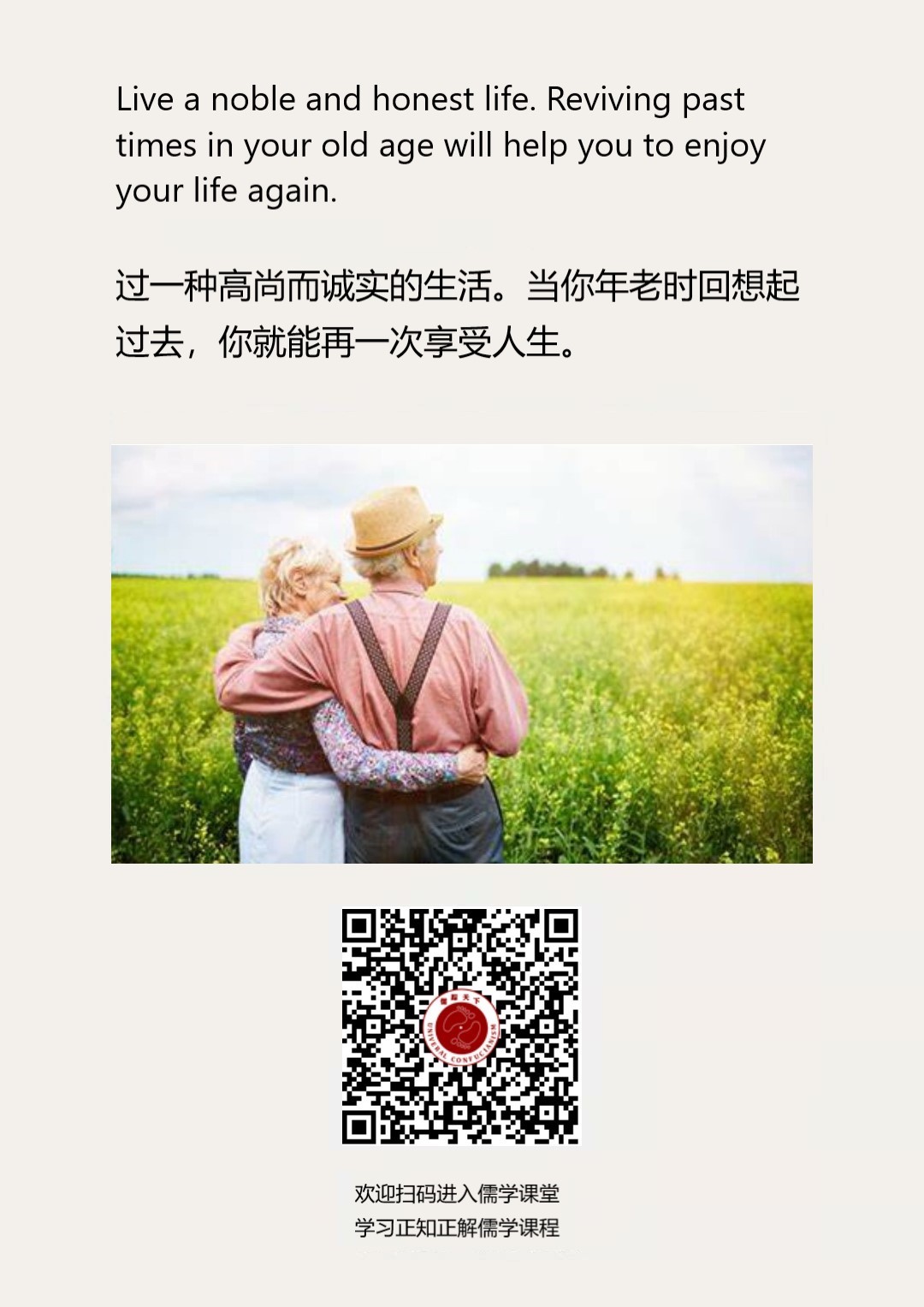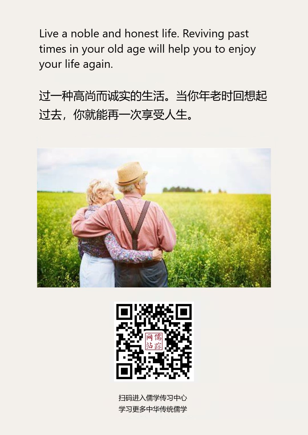 Confucianism English 149 | 过一种高尚而诚实的生活。当你年老时回想起过去,你就能再一次享受人生。
