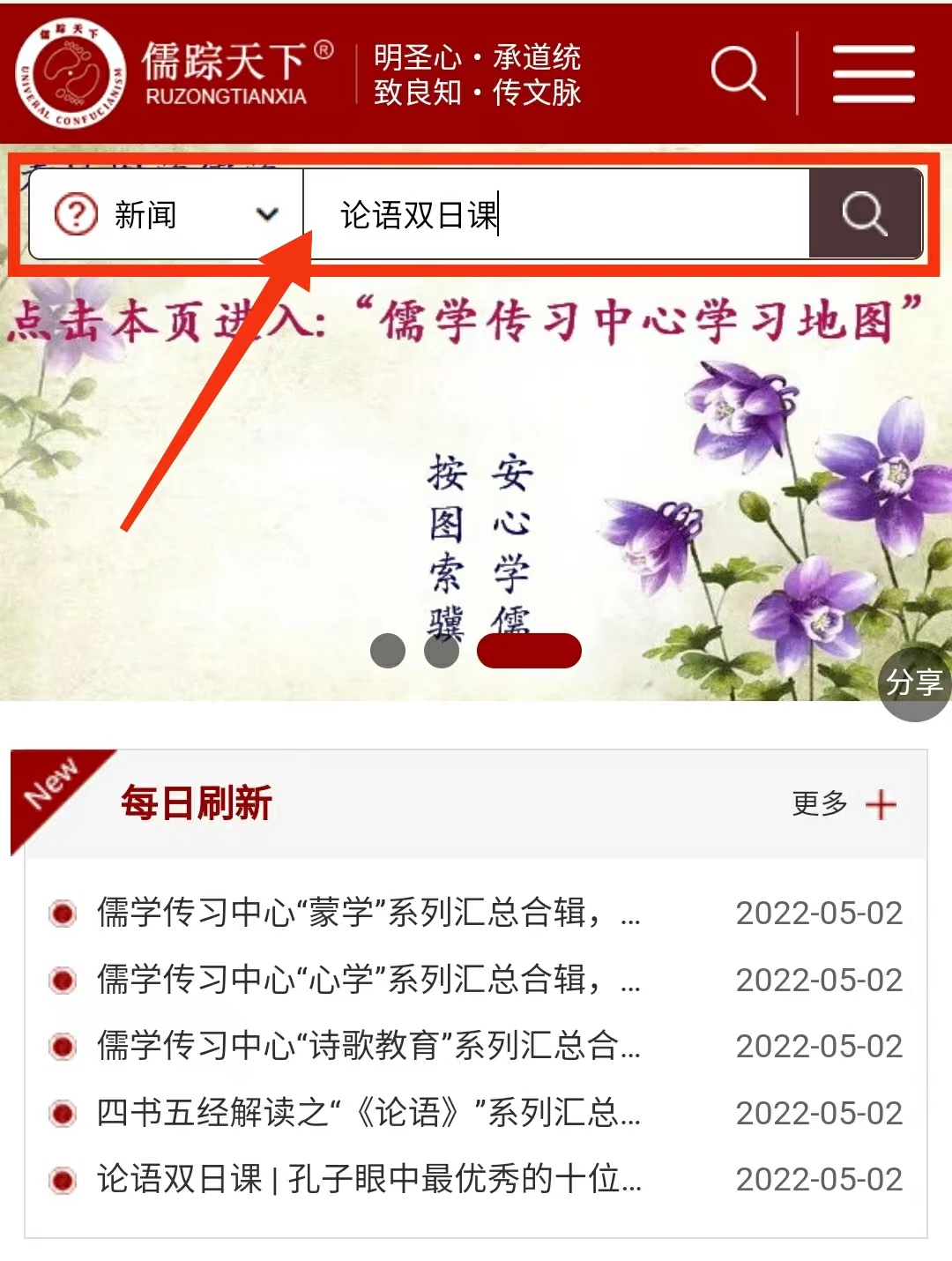 论语双日课很多,请在官网首页的搜索条里搜索(关键字:论语双日课),如下链接和界面: